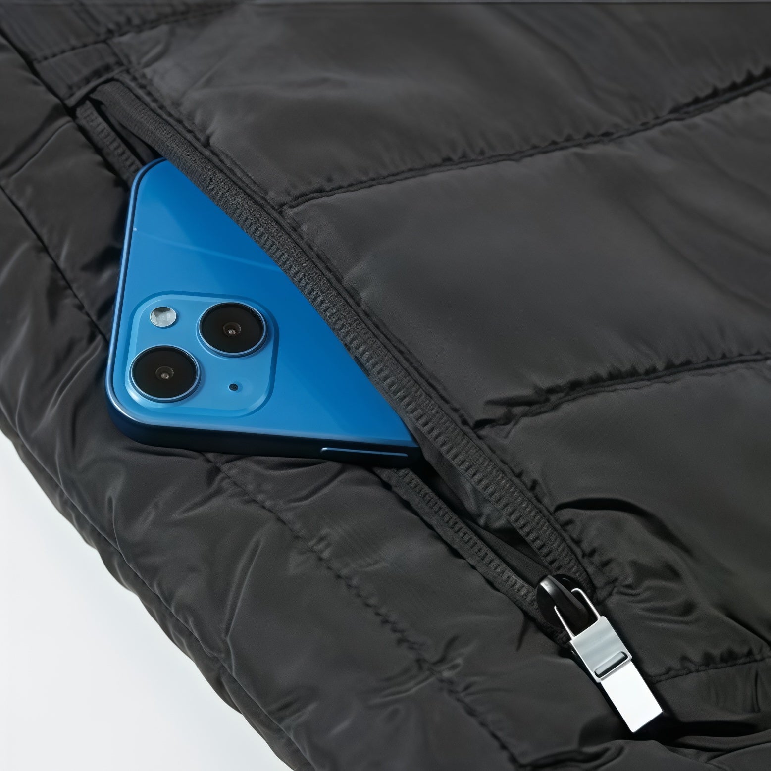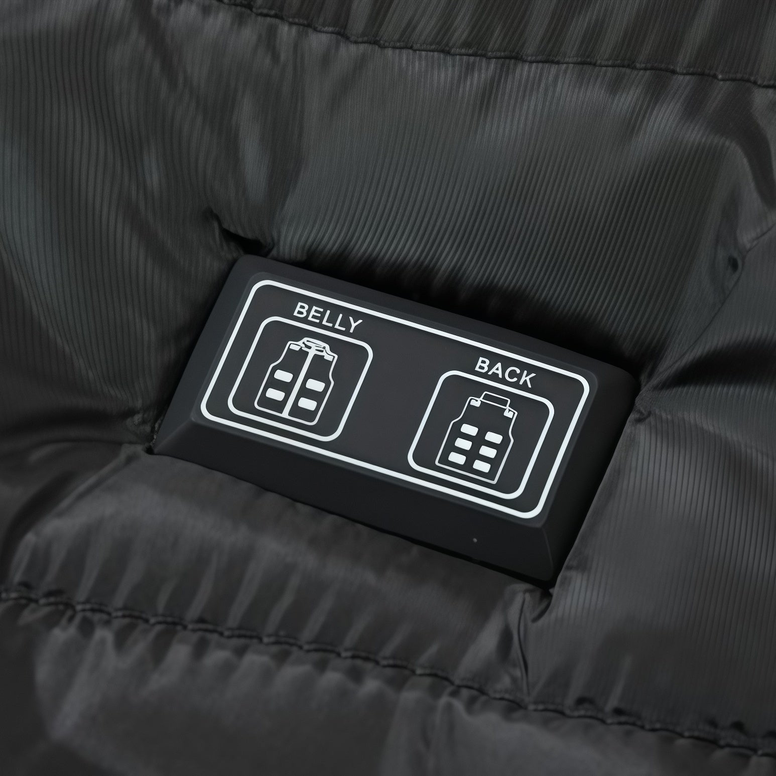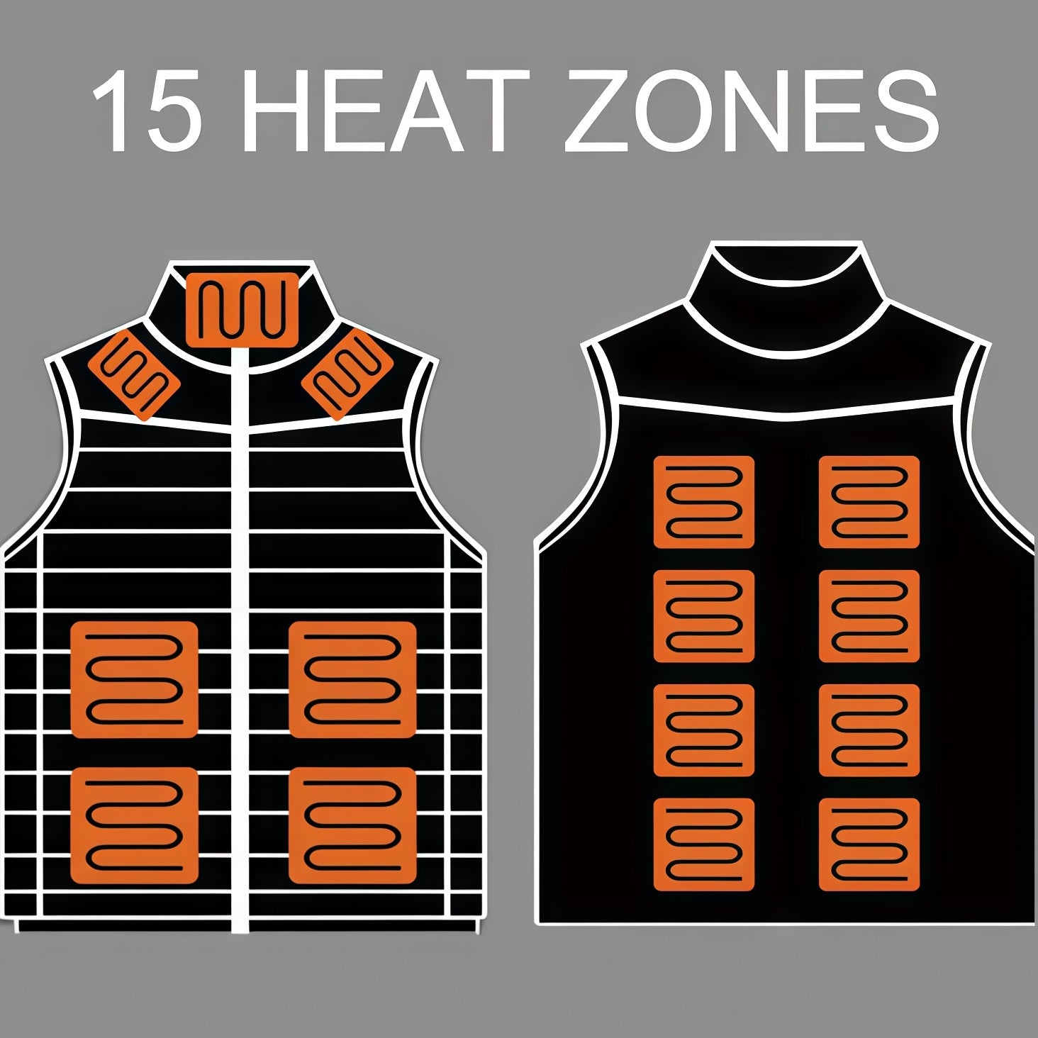 Which areas does this heated vest warm, and is the temperature adjustable?
